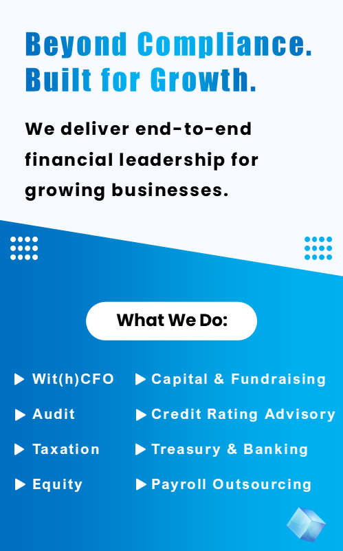 We go beyond just Income Tax, GST, Audit, Accounting, or Payroll Outsourcing… We help businesses raise funds through banks and capital markets enabling them to grow faster and stronger.